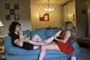 | Pedrianna arrives at Mistress Chloe’s house to hear some great news. They have a slave coming in from out of town next month, who loves to worship feet! They are very excited about their upcoming session, and talk about what they will do with their lucky slave. Pedrianna slips off her pumps, and Chloe happily pampers Pedrianna’s feet with a relaxing foot massage. Chloe sniffs her toes and black pantyhose and gives her feet a good rubdown. Chloe wants the favor returned, so Pedrianna slips of Chloe’s sexy sky high platforms and returns the favor on Chloe’s bare feet. The girls give in to the temptation of those sweet, scrumptious toes, and soon begin taking turns worshipping each others feet. Pedrianna slips off her pantyhose for some bare foot tongue action. The girls then sit on the couch for more foot pampering action as they rub each others feet and legs down with lotion, and suck toes some more! The whole time, they talk about their lucky slave, and what he is in store for! 50 min. |