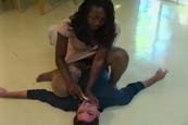| When Tigris discovers a man is an active member of the KKK, watch out! This woman is ferocious! She gets revenge on him that leaves him nearly dead. She breaks into his house, and puts him in his place with a swift kick to the groin. She proceeds to completely humiliate him by using him as an ashtray and a spittoon for her phlegm. She jumps all over his stomach with her stocking feet, and then removes them for some bare foot torture as well. She kicks him around like a rag doll, and has him crawling to worship her toes. She puts out her cigarettes on his tongue, and forces him to inhale as she farts directly in his face. She then makes him beg for some dog food to eat, which he must consume with her ashes and spit to make the meal complete. 30 min. |