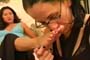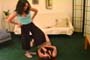| Two stories involving hot ladies with hot tempers. Sabrina wearing a jean skirt and black sling back pumps angrily approaches Chloe. She knows Chloe has been sleeping with her man and is ready to fight it out. Watch as she tackles Chloe to the floor knocking the white sling back heels right off Chloe’s feet. Her red dress flies up giving a peek of her sexy stockings and garter belts. The ladies wrestle and fight all over the floor kicking their shoes off time and time again. The next story includes Mistress Maxine and her submissive slave Rebecca. Maxine has just lost a race to Chloe and Rebecca thinks it’s funny. Maxine punishes her by kicking her to the ground and stepping on her chest. She rides Rebecca like a horse and slaps her behind with her flip flops. Rebecca is ordered to beg for more and worships Maxine’s beautiful feet for forgiveness. Maxine can be brutal, don’t make her mad! 35 min. |